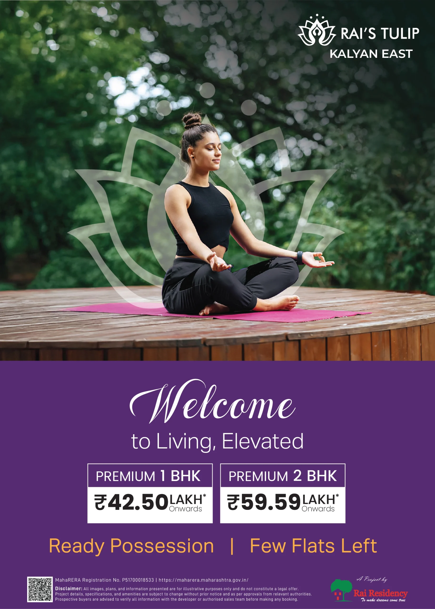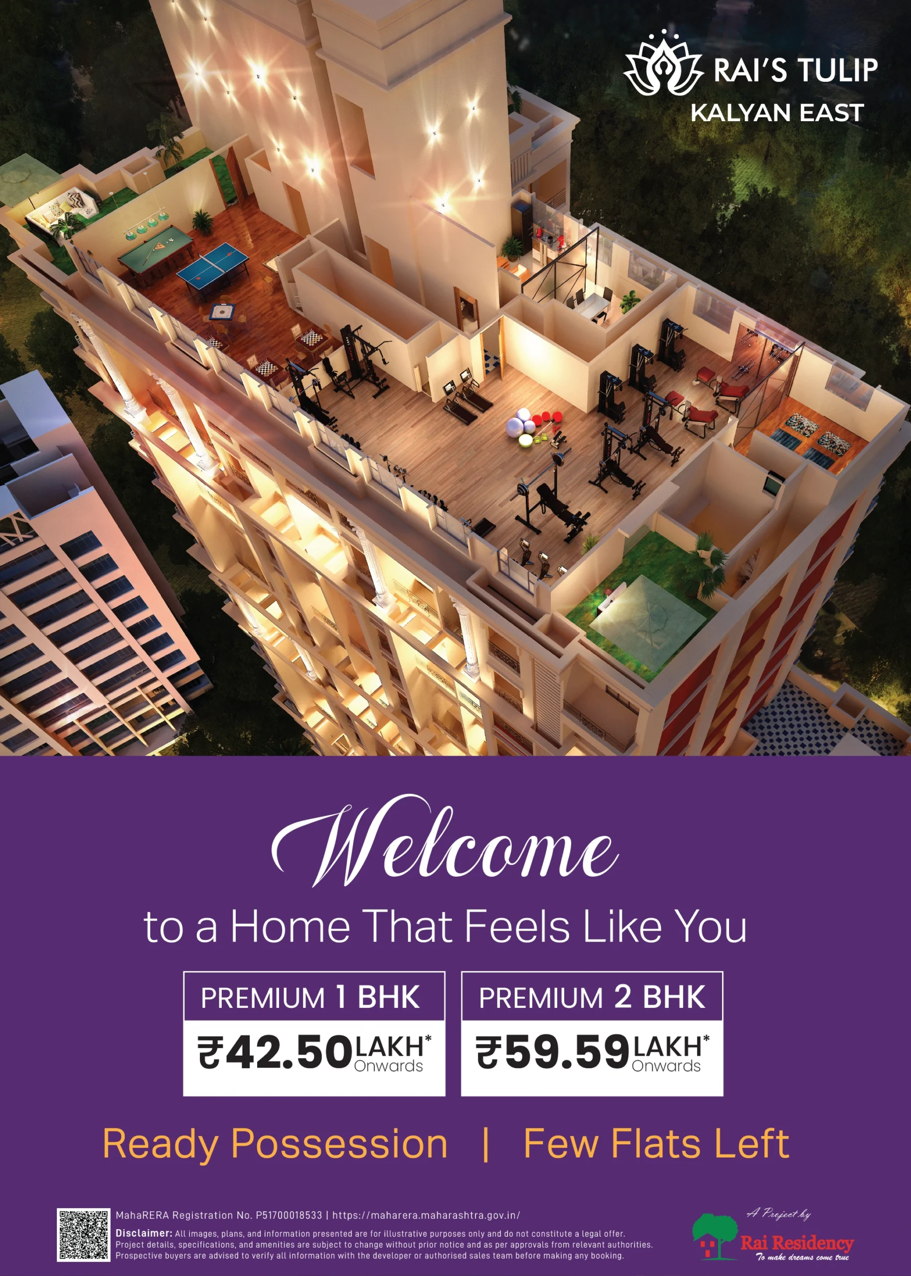 Rai’s Tulip by Rai Residency is ideally located at Tisgaon Road in Kalyan (East), offering seamless access to essential infrastructure, daily conveniences, and major transit routes. With educational institutions, healthcare centres, shopping hubs, and transport facilities just minutes away, it’s a location built for comfortable urban living.