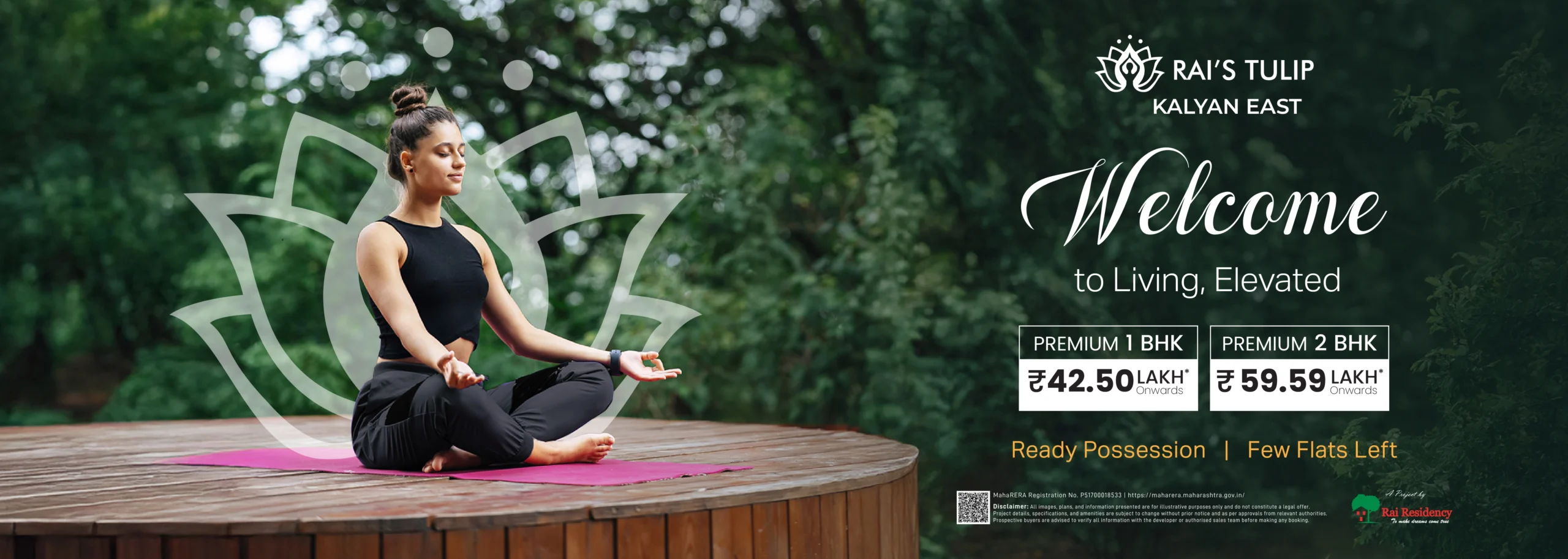 Nestled in a peaceful yet well-connected neighbourhood of Kalyan, Rai’s Tulip by Rai Residency is a thoughtfully planned residential space for those who seek a quiet life with urban ease. Designed to bring in natural light, fresh air, and peace of mind, Tulip offers spacious 1BHK and 2BHK apartments built for comfort, connection, and community.